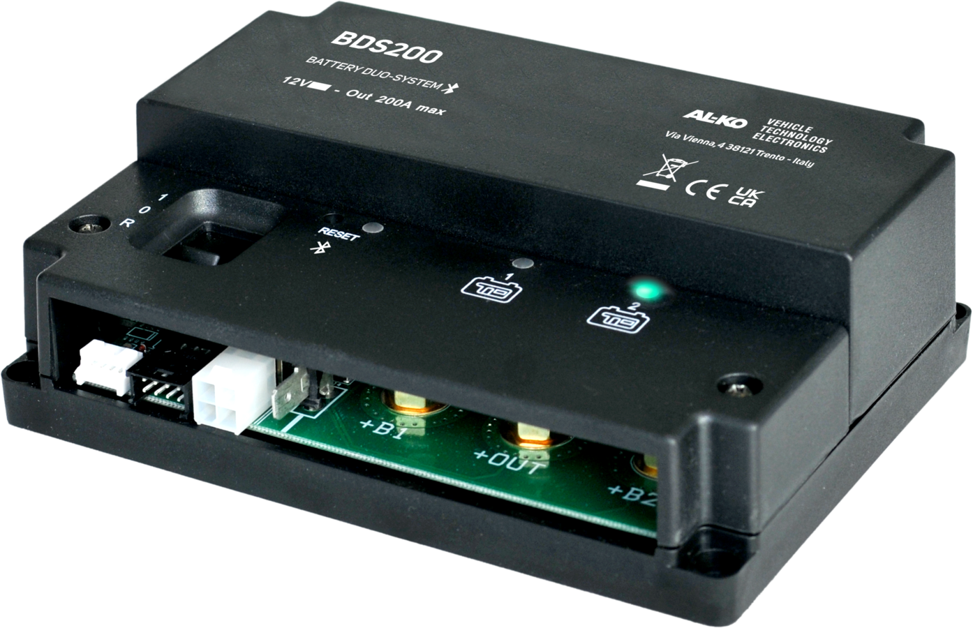 The intelligent Battery Duo System 200 (BDS200 for short) helps to optimally manage two 12-volt on-board batteries in a motorhome or caravan – even if they have different ages or capacities. It recognizes when a battery is defective and automatically disconnects it from the system.